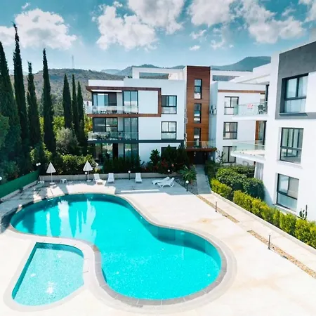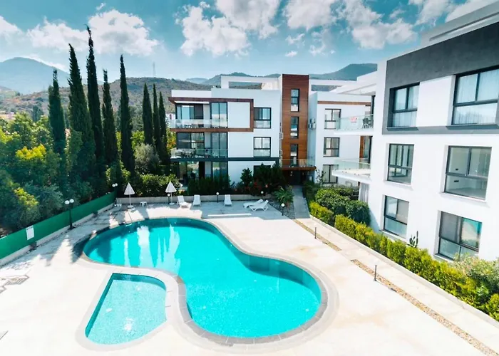 82m²のEden Garden 2 Bedroom Alsancak ニコシアアパートにはテラスがあり、Lapethos Aqua Parkから徒歩で25分くらいに位置しています。 WiFiと無料の専用駐車場は、顧客に必須の設備のひとつです。